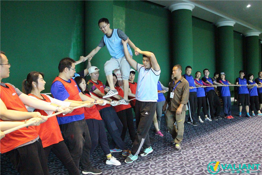 4、學(xué)員在不得用手的情況下,將這根皮筋用牙簽傳遞,知道最后一個人,最先完成的小隊獲勝;