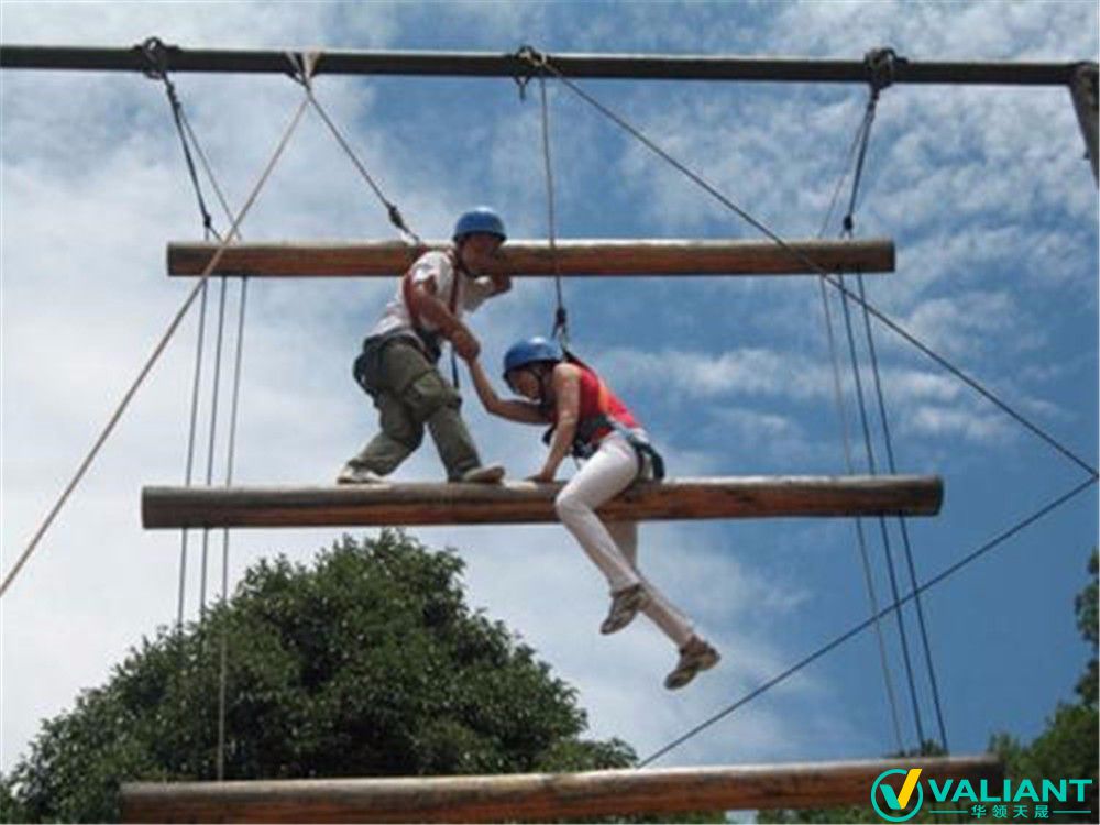這是一項強調團隊合作的高空項目。隊員都要在穿戴好安全裝備的前提下,已組為單位,沿著天梯盡力向上爬,所有隊員都腳踩第五根,手扶第六根橫木時,視為項目成功。