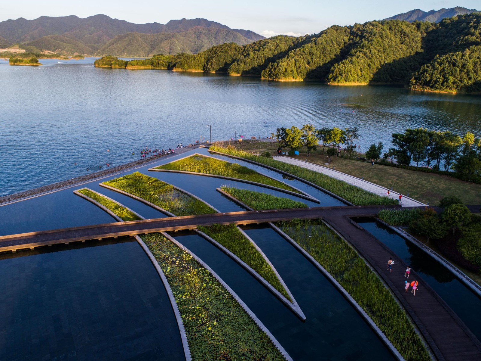 水庫壩高105米,長462米;水庫長約150千米,最寬處達(dá)10余千米;最深處達(dá)100余米,平均水深30.44米,在正常水位情況下,面積約580平方千米,蓄水量可達(dá)178億立方米,在最高水位時擁有1078座大于0.25平方千米的陸橋島嶼,并以2平方千米以下的小島為主,島嶼面積共409平方千米。