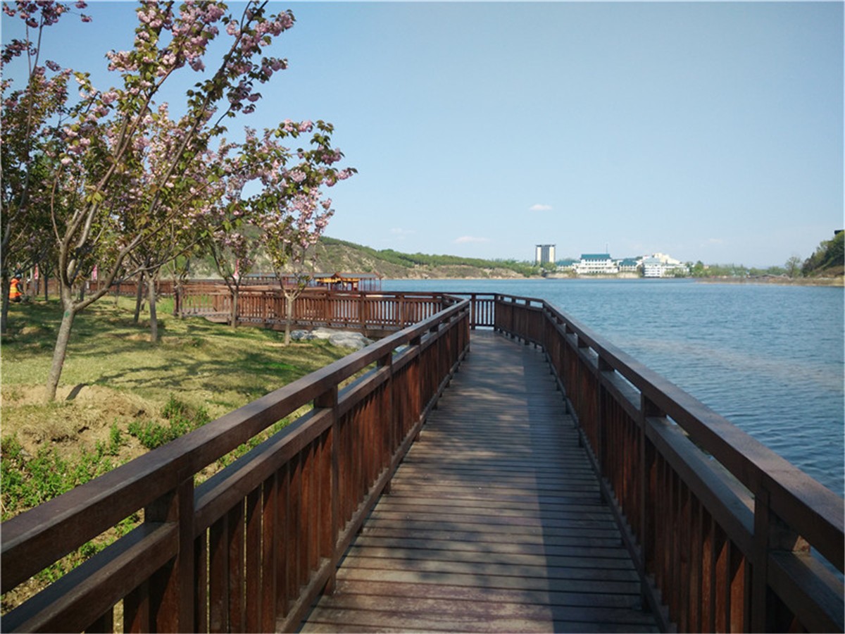 酒店出門(mén)就是雁棲湖棧道北段,景色宜人